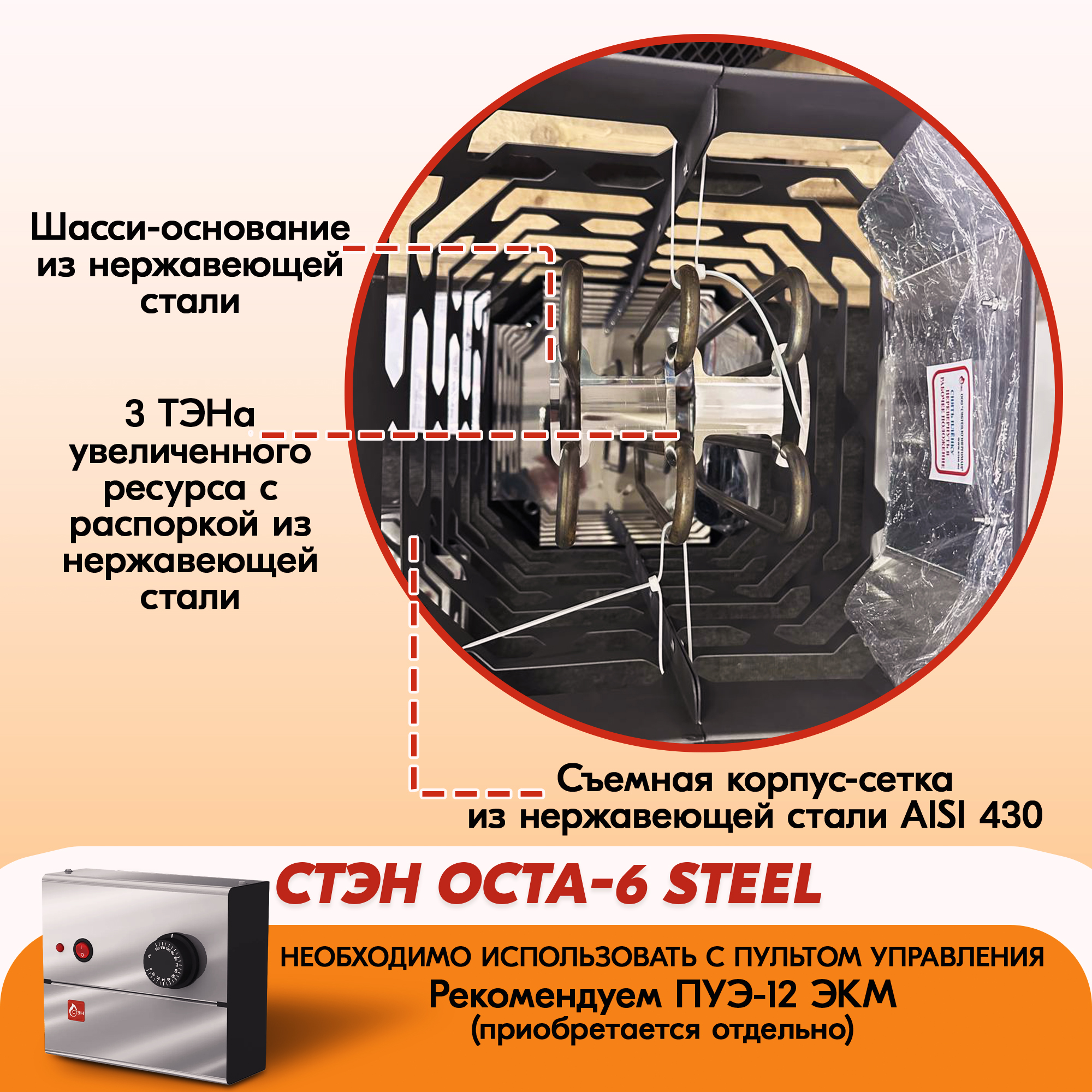 Электрическая каменка СТЭН ЭКМ 6 Octa steel в Волгограде | Доставка по России