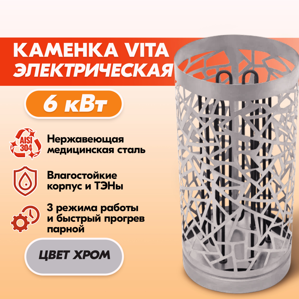 Электрокаменка VITA 6 кВт нерж. в Волгограде | Доставка по России