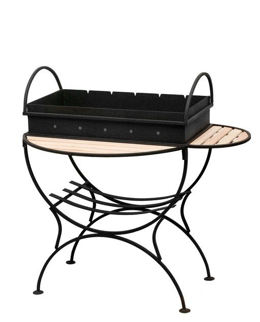 - Для усиления корпуса и придачи ему красивого внешнего вида сверху короб покрыт жаропрочной краской, для оформления используют кованые элементы.
