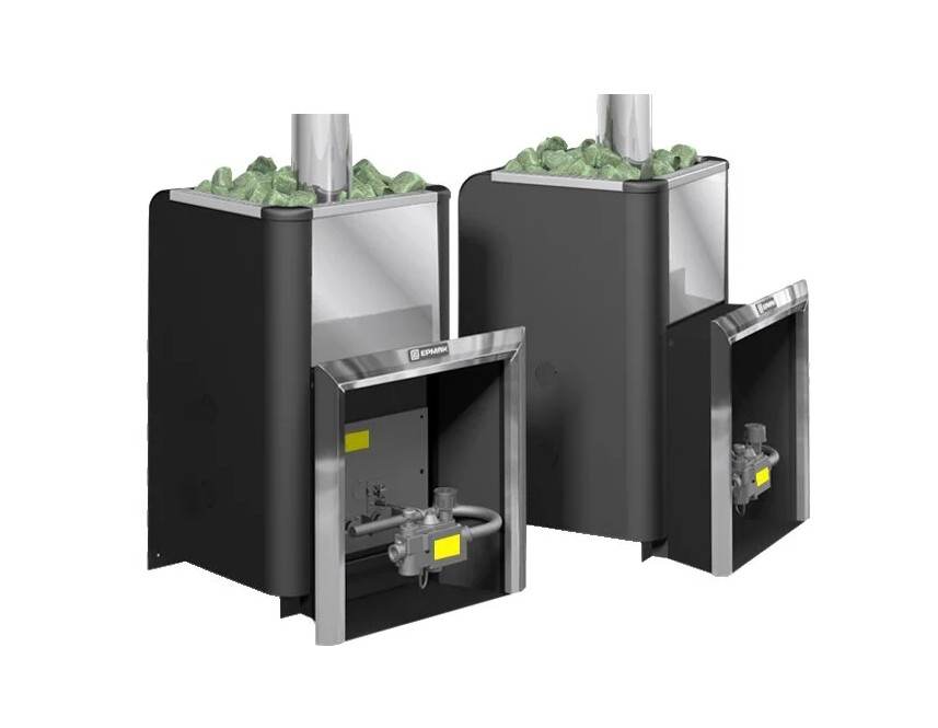 -Мощная горелка (16 кВт) с энергонезависимой автоматикой регулирования и безопасности. С возможностью работы на пропане, при установке дополнительного комплекта жиклеров (опция). Работает в автоматическом режиме по заданной температуре в парилке (+70 .. +120 °C).