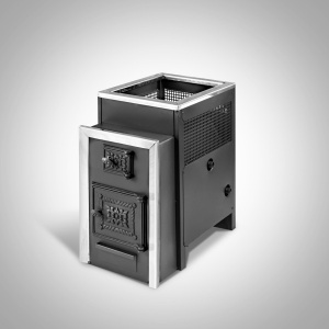 Банная печь имеет предназначение - обогрев парилок объемом до 30 м3. Имеет выносную топку, что позволит вам совершать растопку из соседнего помещения. "Радуга" выполнена из конструкционной стали, толщина стенок - 6мм, верхняя плитка - 8мм. Для нагревания воды используется встроенный теплообменник. С помощью прочистной дверцы можно легко очистить печку и дымоход.Печь с открытой каменкой .Увеличенные дымовые каналы печи граничат не только с камерой каменки, но и с конвекционным каналом. Горячие газы в дымоходе направлены по кругу и даже имеют движение вниз. Двигаясь вниз, они проходят через наиболее раскаленные поверхности печи, где происходит нейтрализация смол и сажи. Удачна в данном случае и геометрия каменки. Влага распространяется по всему объему камеры с камнями, исключая попадание воды на топку и пол. Печь имеет защитный кожух, в котором также заключено несколько положительных моментов. Для увеличения объема каменки кожух выполнен высоким. В верхней части изготовлен из листового материала с отверстиями. Проходя сквозь решетку, пар понижает свою скорость, становится рассеянным, распространяется более равномерно по всем направлениям. Тем самым снижается риск ожогов. Отсутствие острых углов печи исключает травматизм.