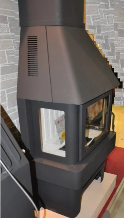 Особого внимания заслуживает уникальная конструкция печи. Благодаря трехстороннему остеклению, вы можете любоваться процессом горения с разных сторон. Например, из кухни или из гостиной.