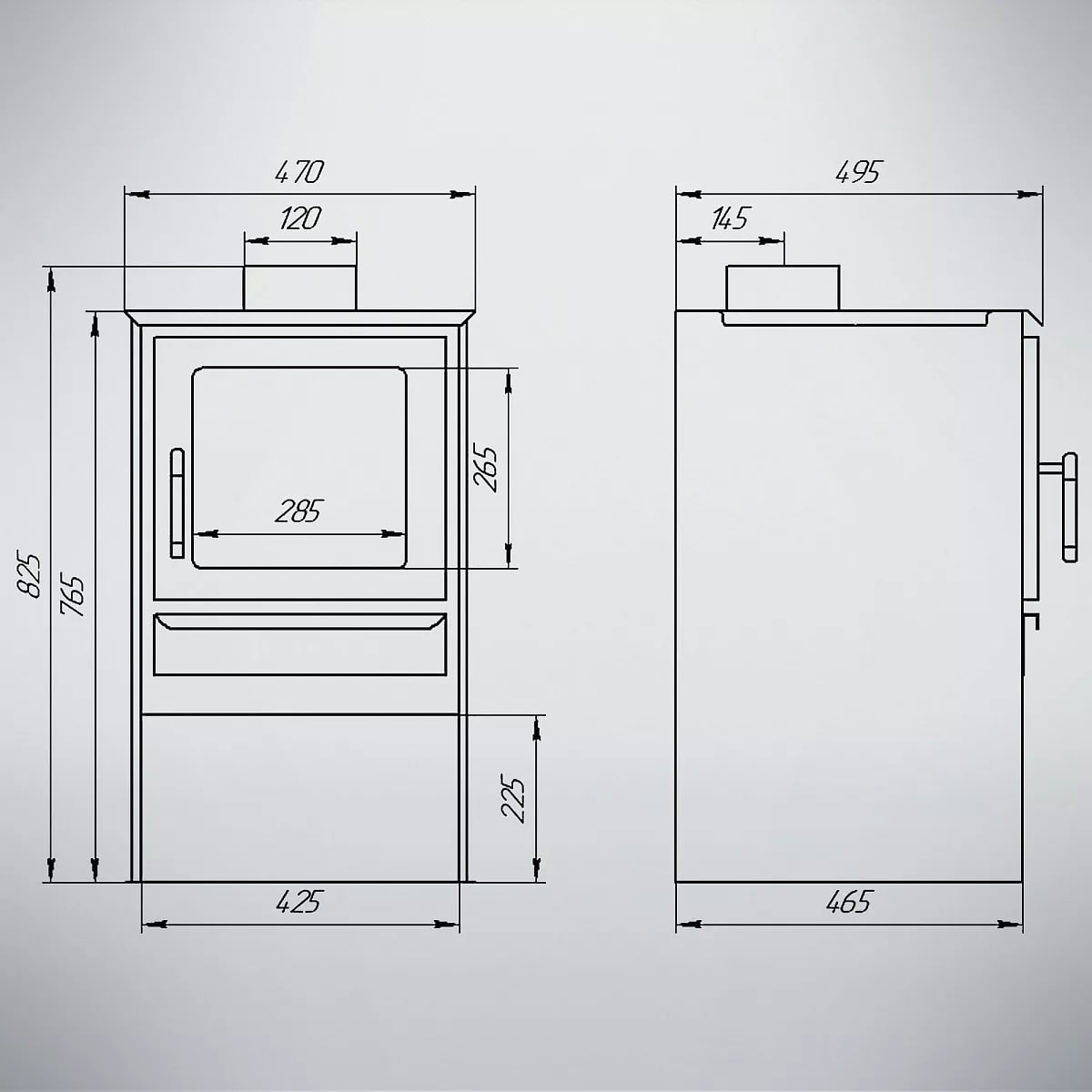 Боковые стенки металлической печи на дровах представляют собой конвекторы.