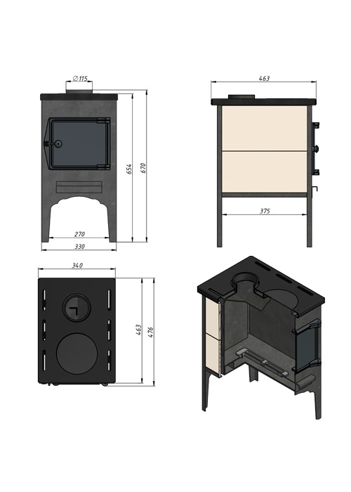 Диаметр дымохода, мм 115