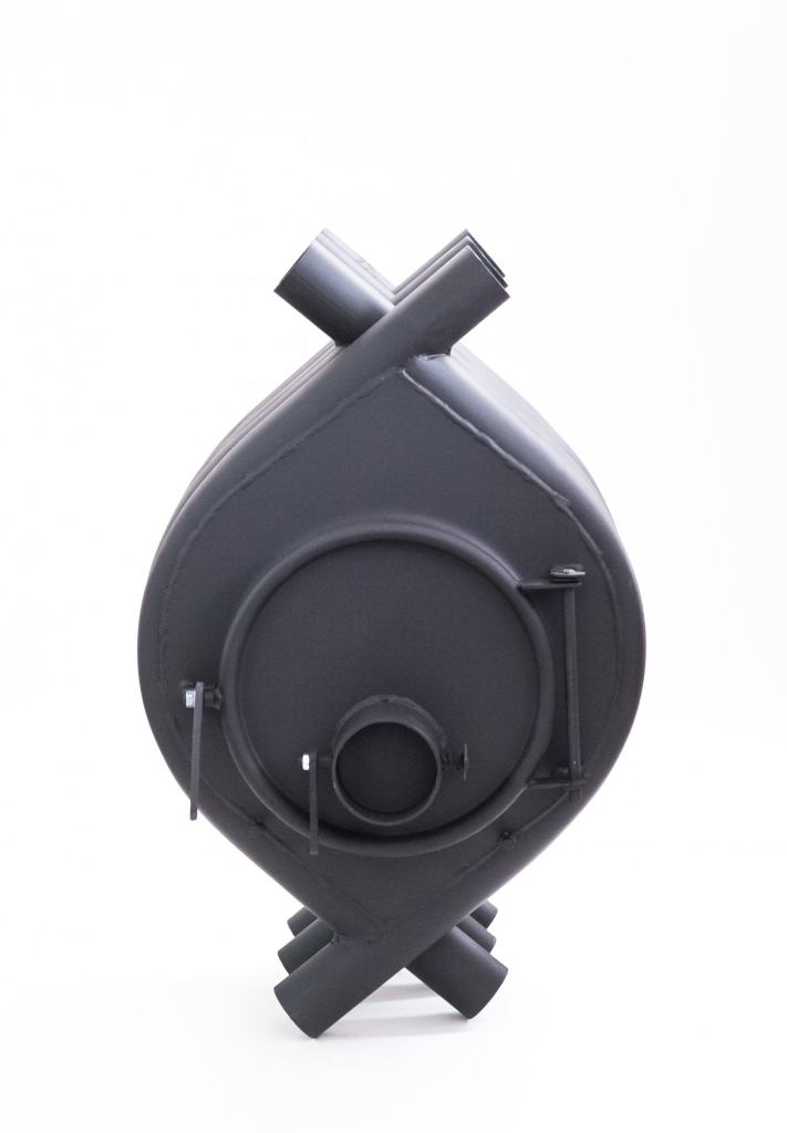 Печь имеет двухкамерную топку, в которой методом тлеющего горения в две стадии происходит сжигание топлива и дожиг печных газов. Печные газы, образовавшиеся от тления дров в нижней (первичной) камере поступают в верхнюю (вторичную) камеру, где дожигаются за счет подачи в нее, через специальные инжекторы подогретого воздуха из отапливаемого помещения.