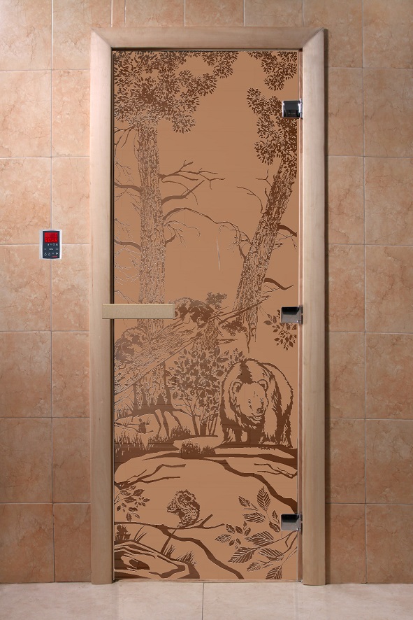 Дверь для сауны "Мишки в лесу" (матовая) 190х70 в Волгограде | Доставка по России