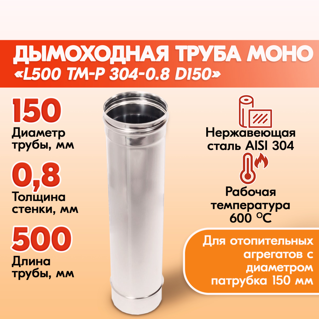 Труба L500 ТМ-Р 304-0.8 D150
