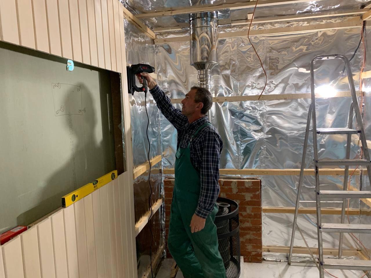 Монтаж банной Печи GFS   установка дымохода, кладка портала