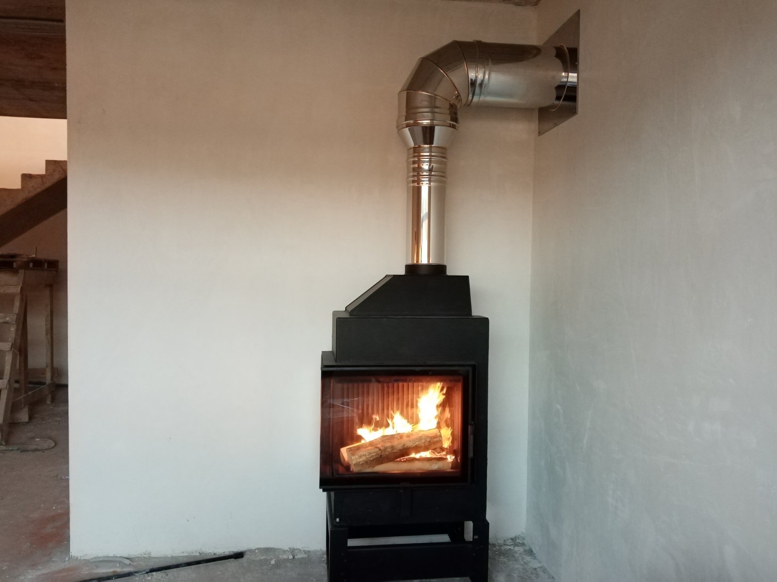 Установка каминой топки и монтаж дымохода через стену под отделку